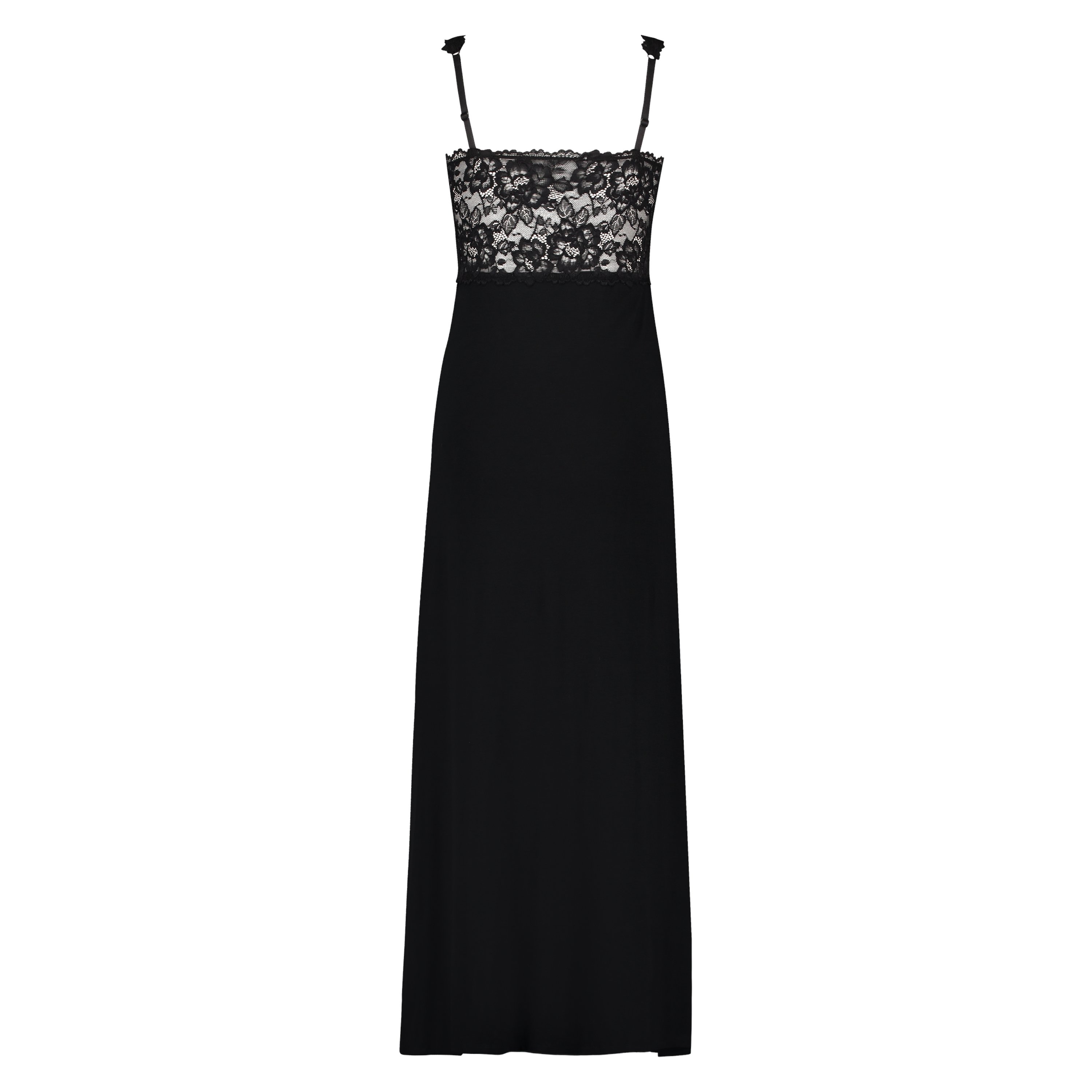 Siéntete seductora en este largo vestido combinación Modal Lace con un acabado de encaje en la parte superior. Este vestido combinación llega justo por encima de los pies y cuenta con tirantes ajustables.