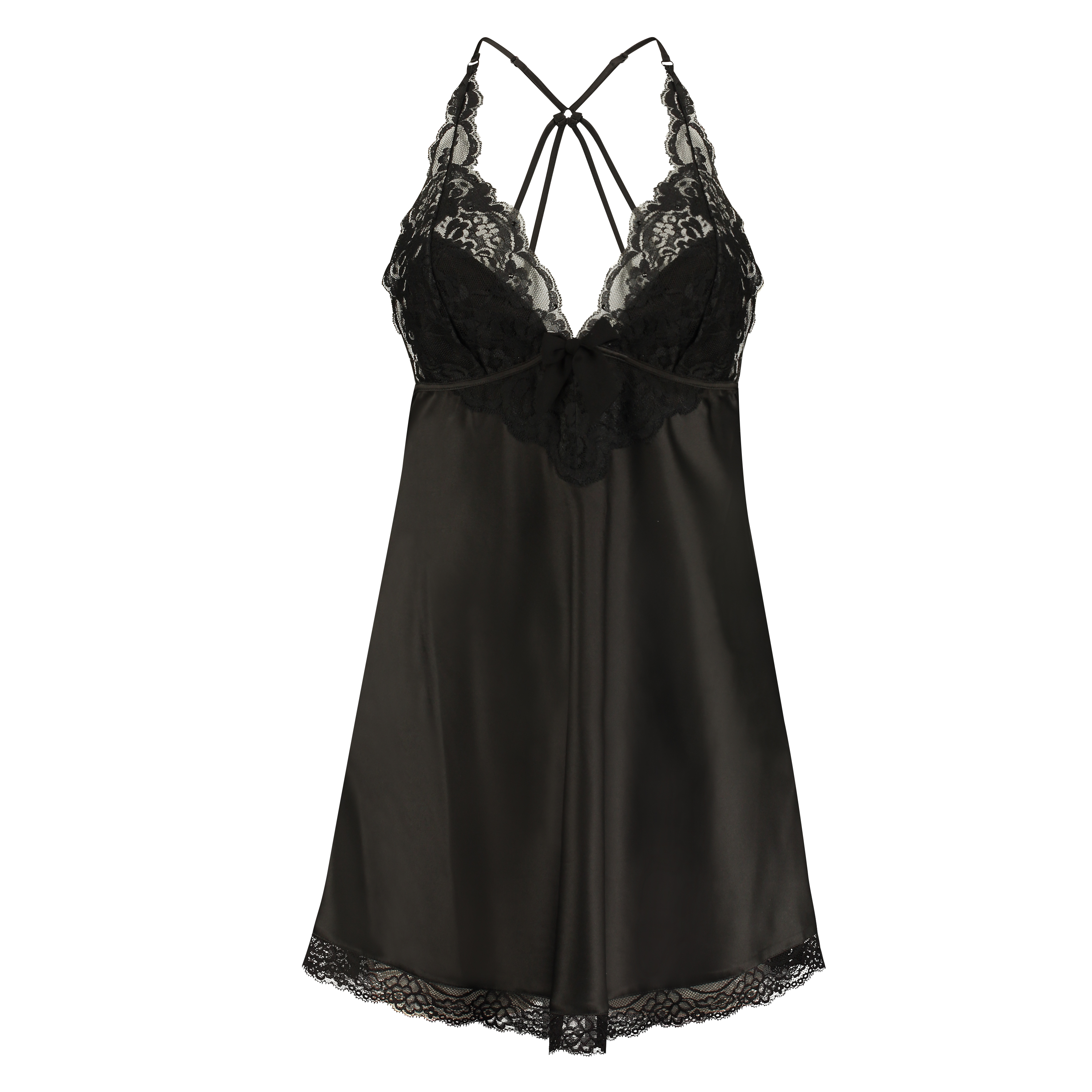 ¡Este corto vestido combinación es de lo más elegante y sexi! Los pliegues con caída y el material de aspecto satinado le dan un toque dulce. Una parte del vestido está hecha de encaje.