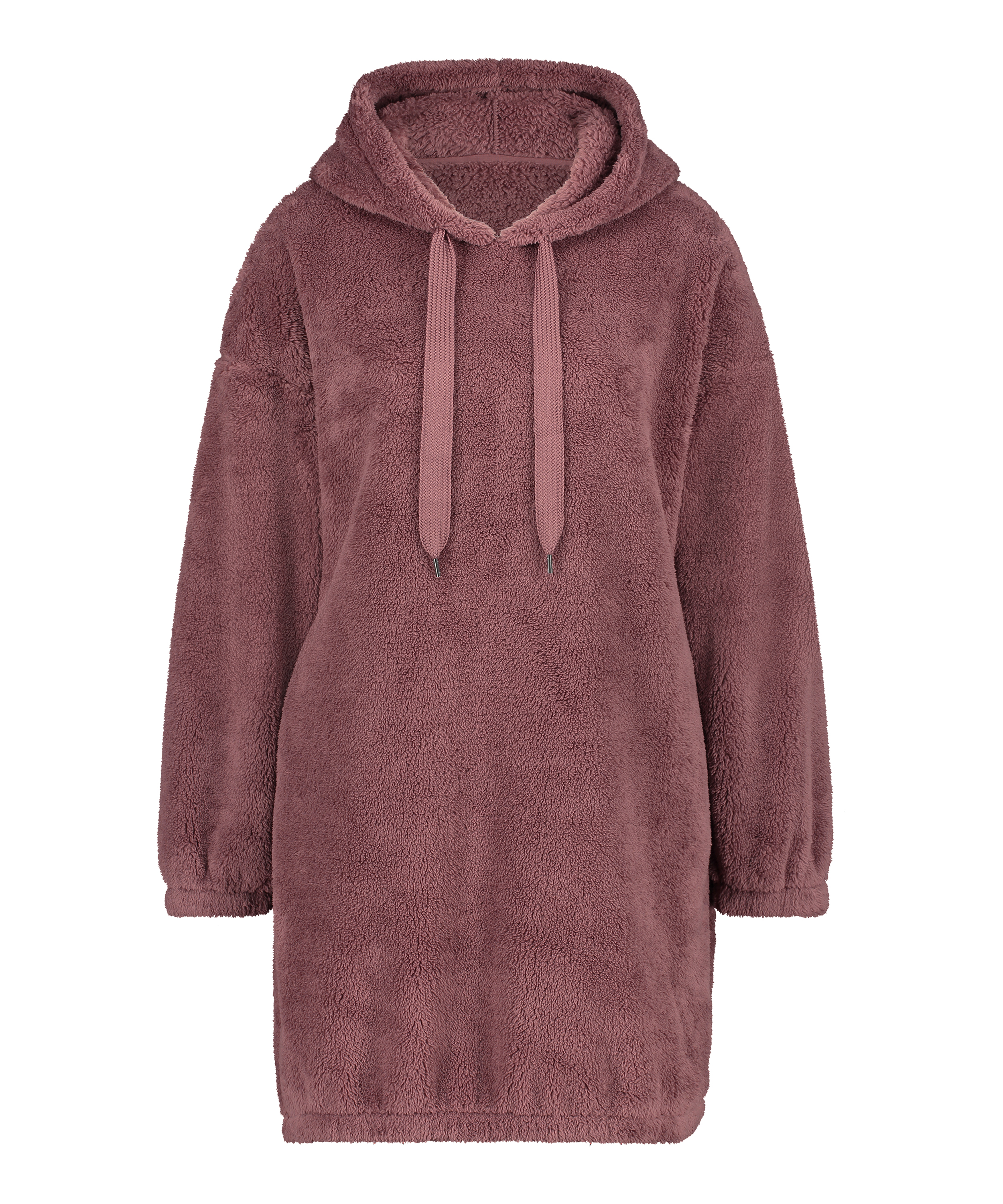Puedes relajarte rápida y maravillosamente con este vestido de forro polar. ¡El vestido es fácil de poner y ya tienes tu conjunto chill completo! El producto contiene bolsillos y capucha.