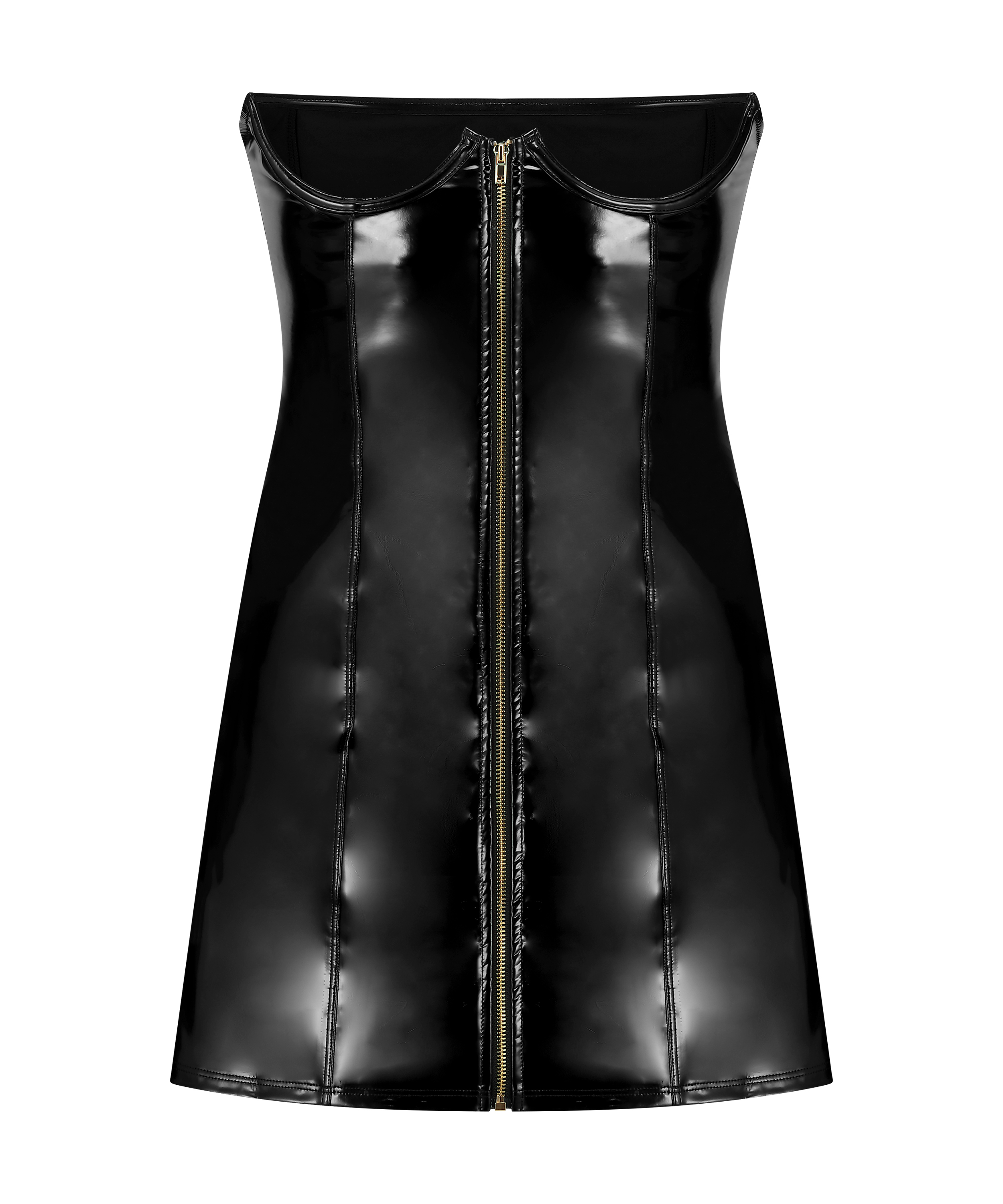 Despierta el deseo con este deslumbrante vestido lencero. Está hecho de piel sintética y tiene un cierre de cremallera en la parte delantera. Este vestido tiene aros para un look extra sexy. Combínala con accesorios sexis. Forma parte de nuestra colección Private.