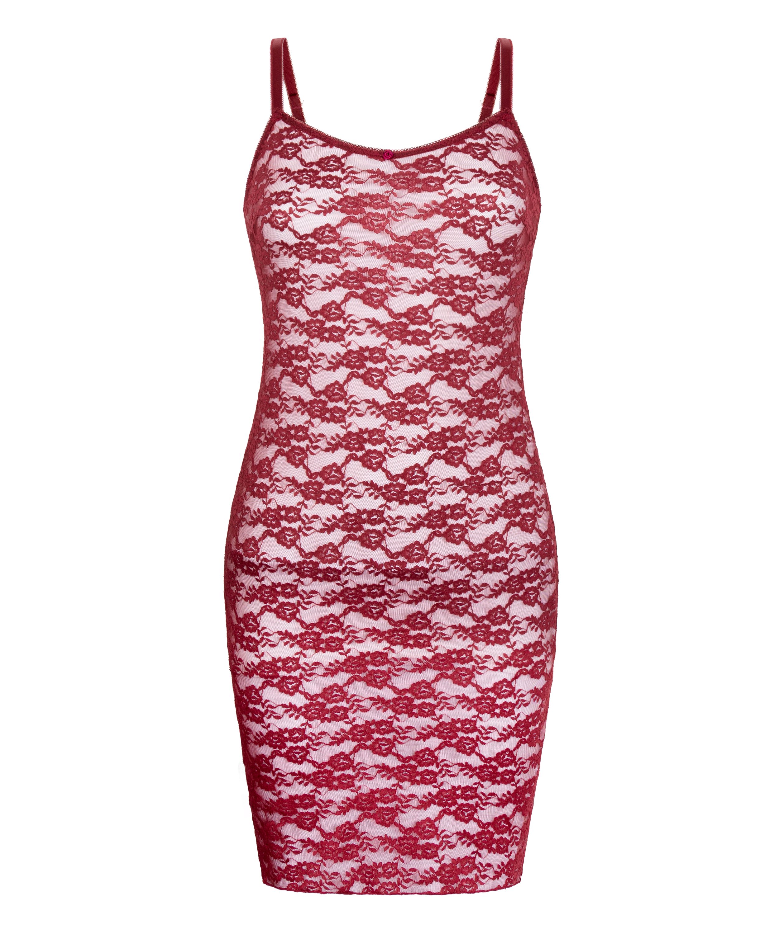 Vestido lencero de encaje integral - Rojo
