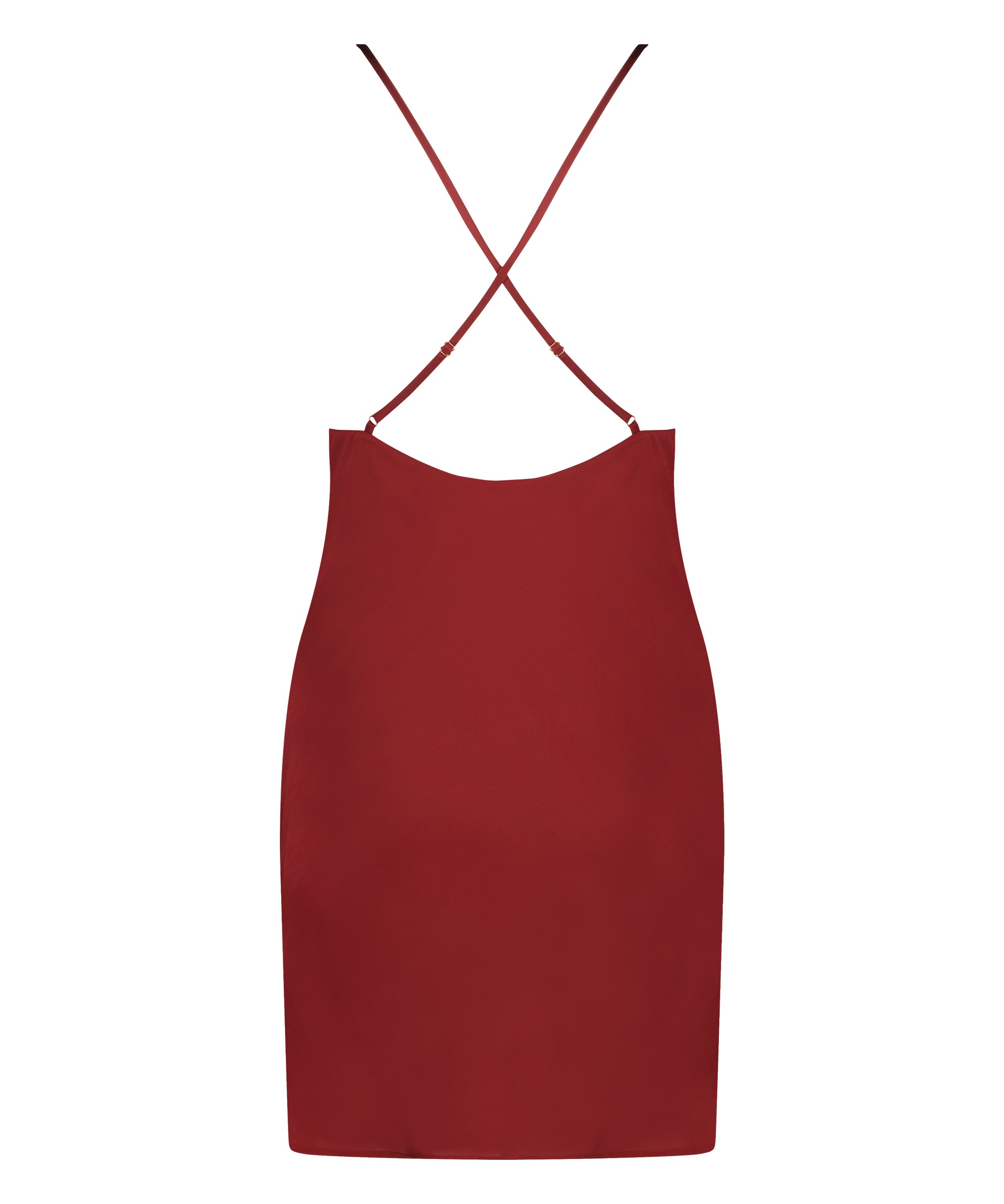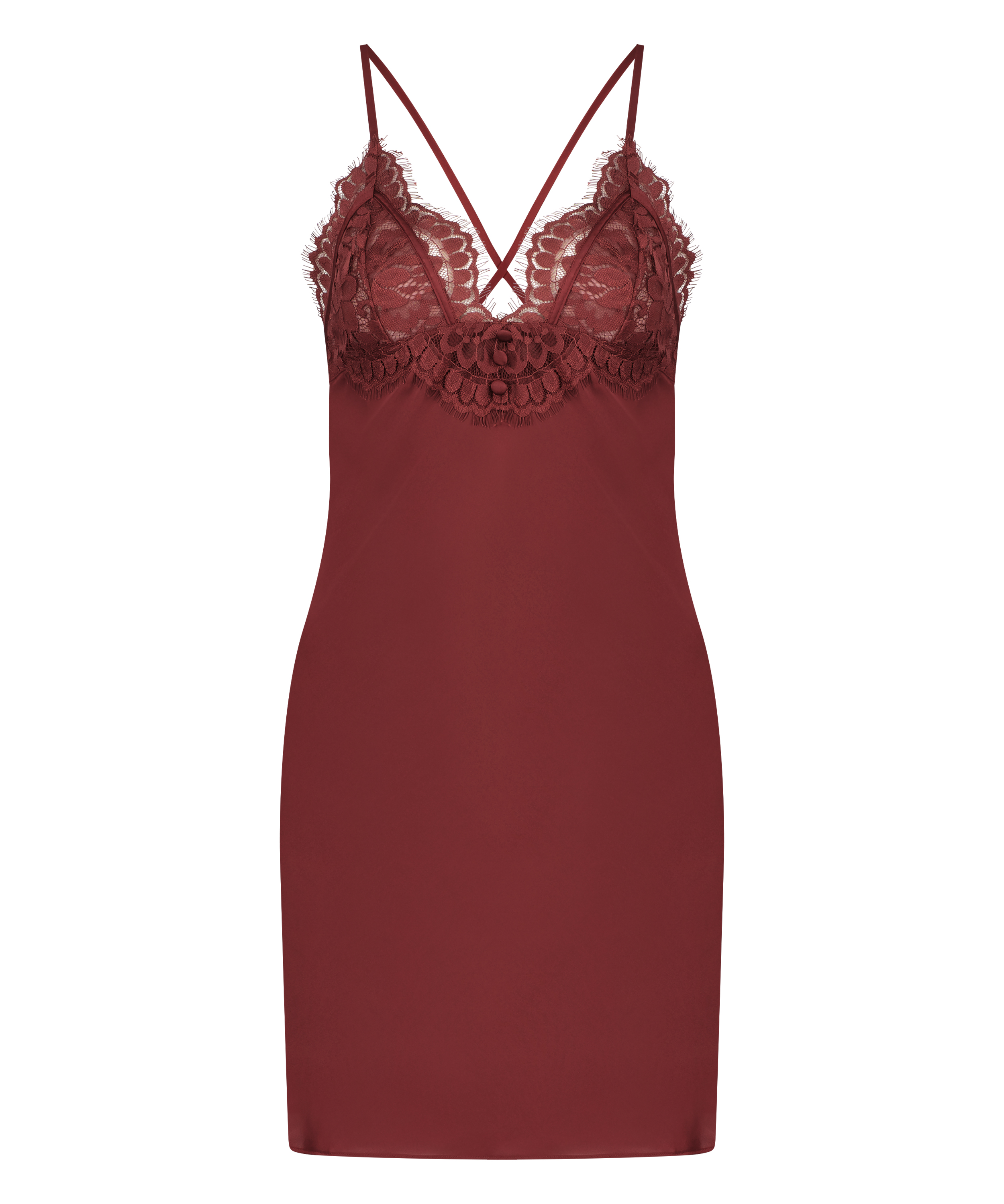 Este vestido lencero no puede faltar en tu colección de prendas elegantes. Es de raso, tiene una bonita V y tiene bonitos detalles de encaje. Combínalo con un kimono a juego para un look completo. Forma parte de la colección Noir.