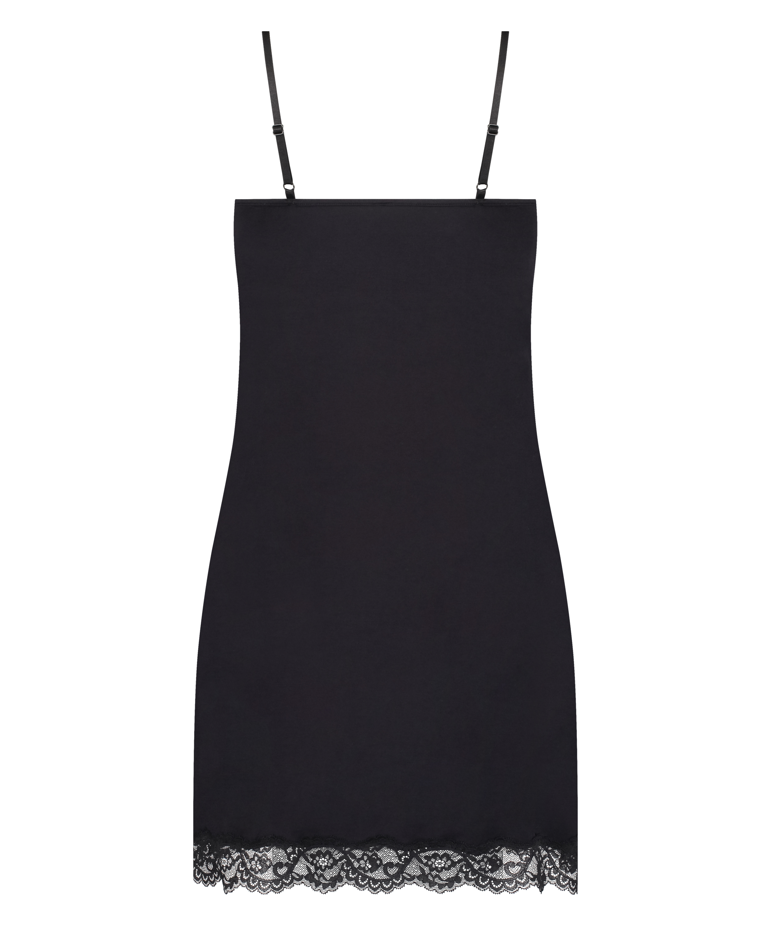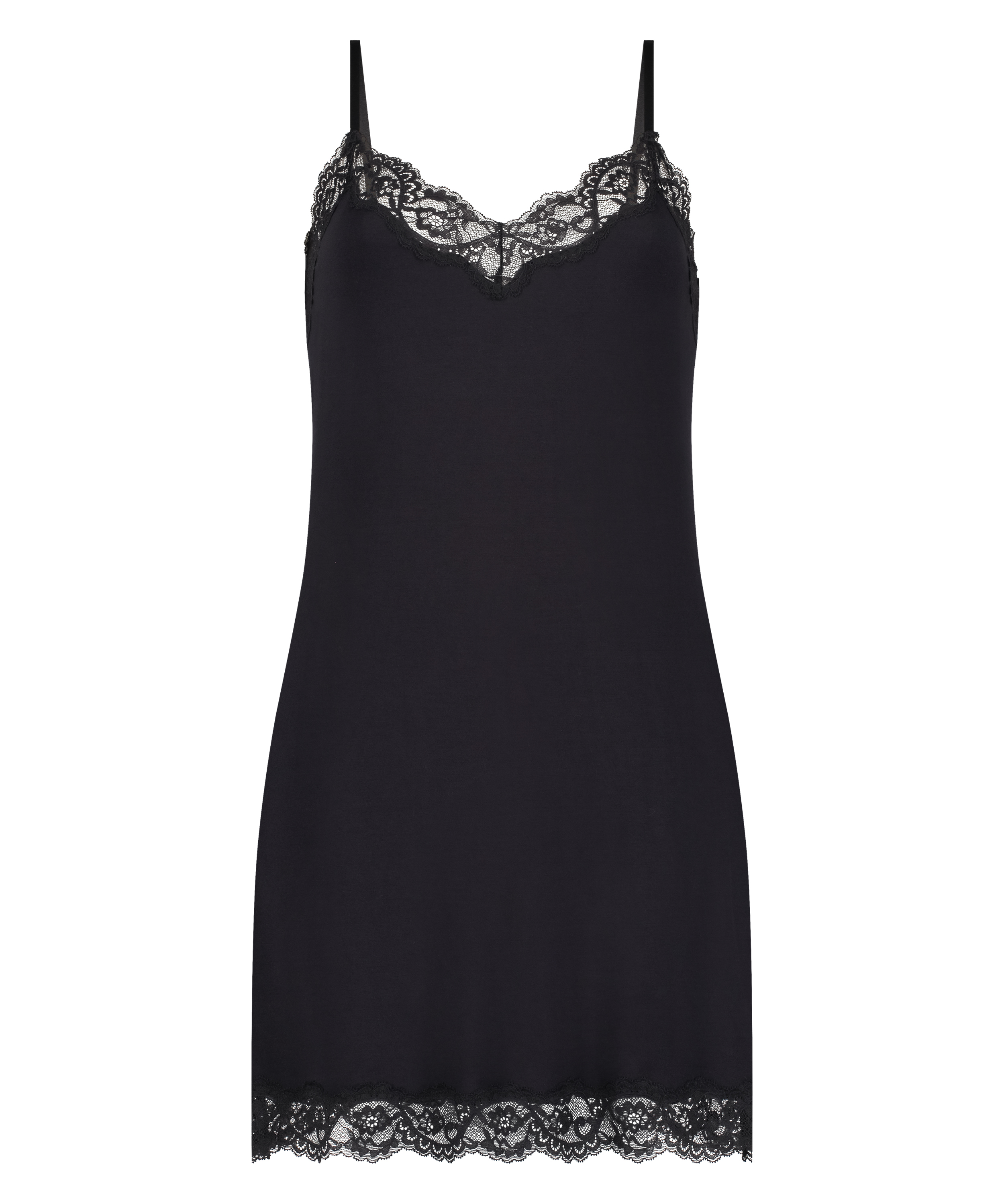 ¡Siéntete sexy con este vestido lencero súper suave! Tiene adornos de encaje debajo de los senos y en la espalda. ¡Combínalo con un kimono para tener el conjunto más cómodo!