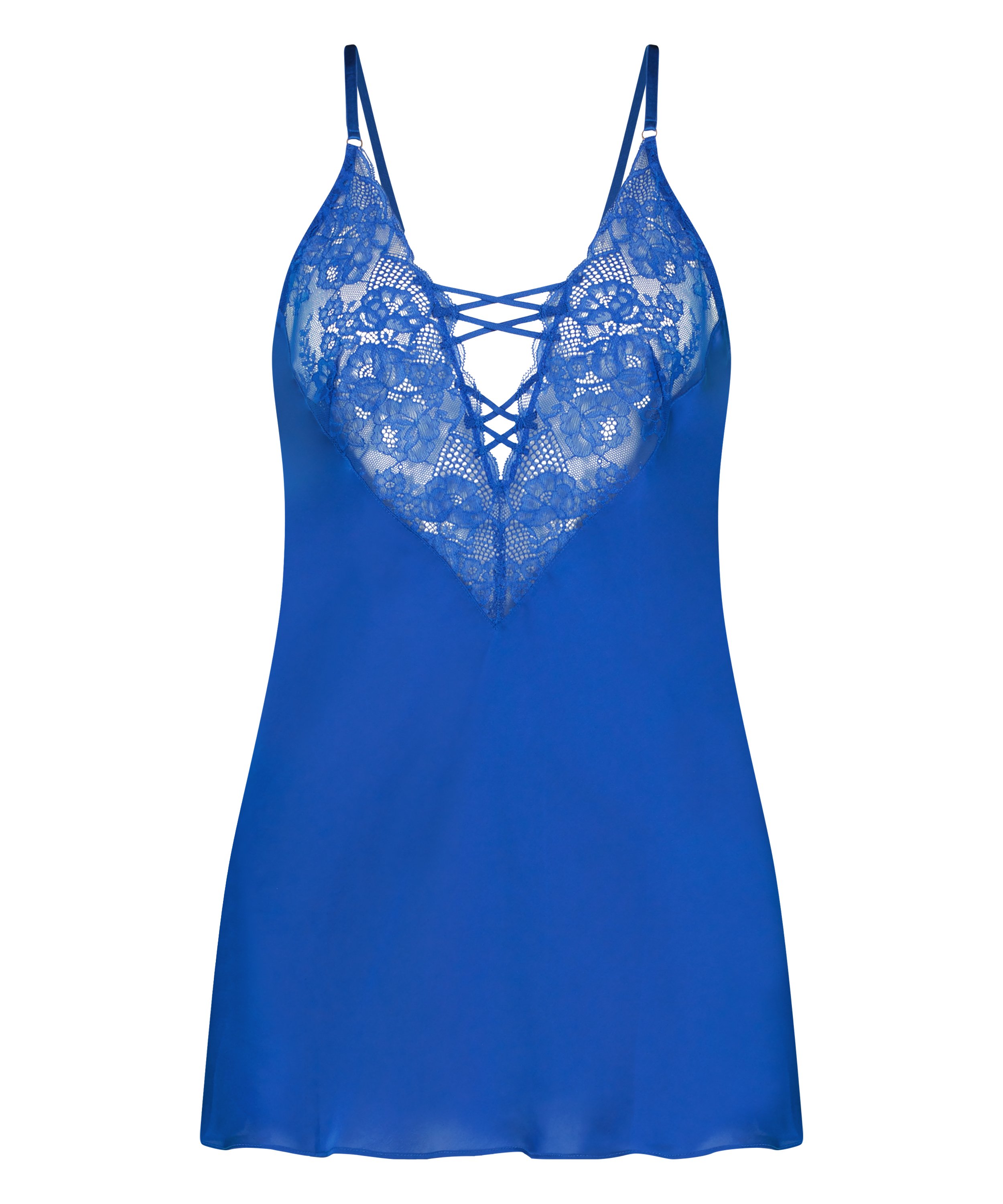 ¡Tendrás un aspecto impresionante con este vestido combinación! De aspecto y tacto satinado, decorado con encaje floral y detalles de tiras. ¡Combínala con el kimono a juego!