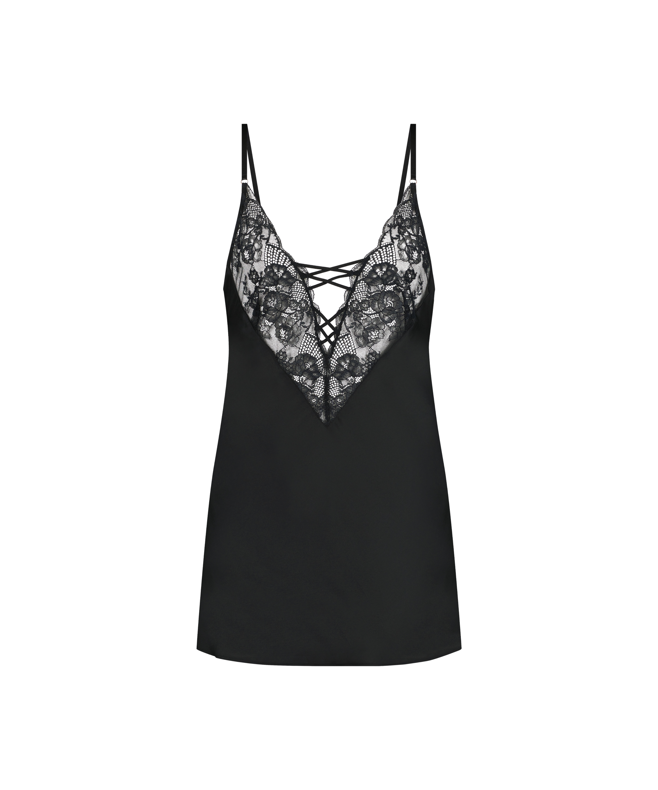 ¡Tendrás un aspecto impresionante con este vestido combinación! De aspecto y tacto satinado, decorado con encaje floral y detalles de tiras. ¡Combínala con el kimono a juego!