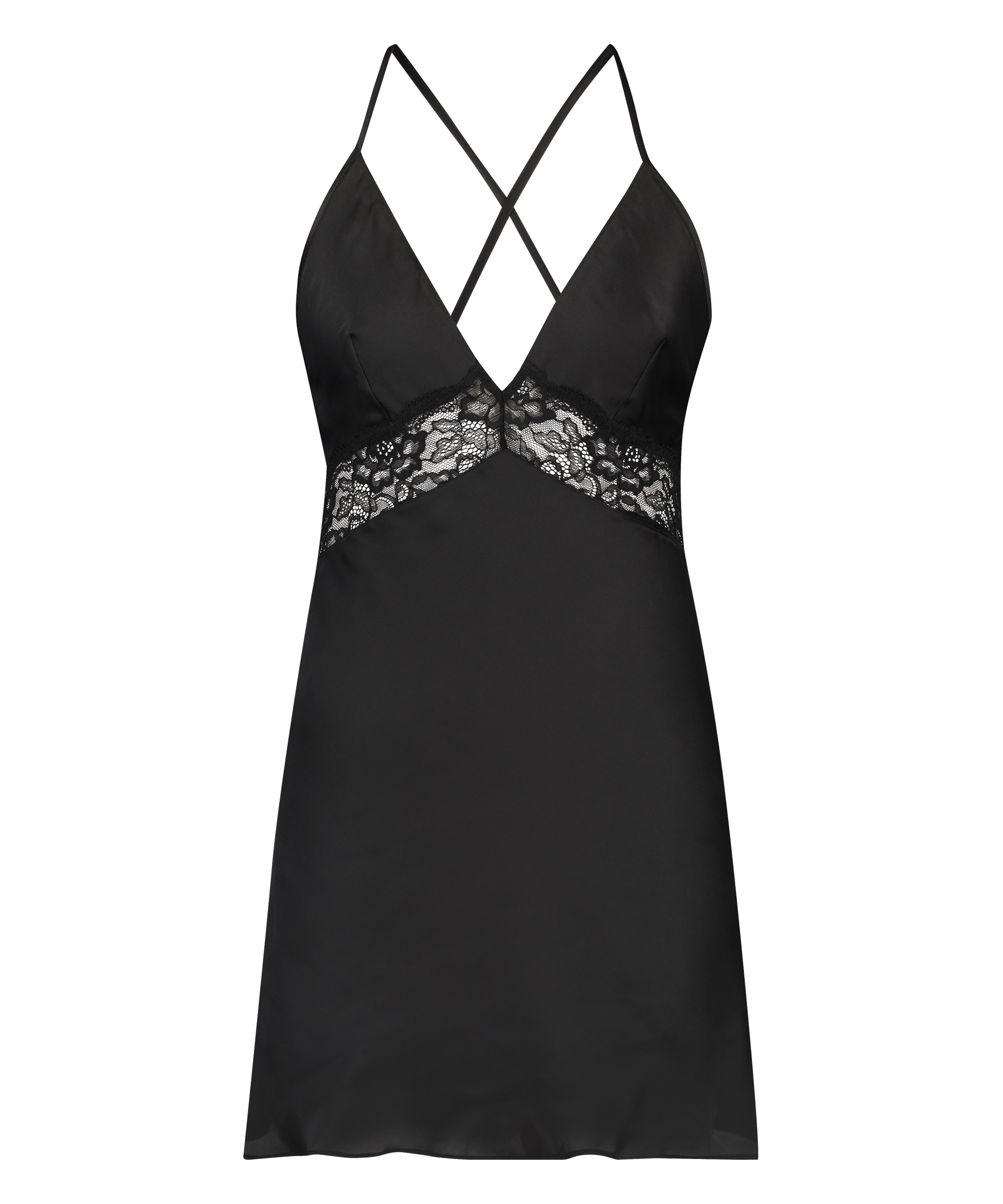 ¡Este bonito vestido lencero te enamorará! Tiene detalles de encaje y un profundo escote en forma de V. ¡Sexi y cómoda a la vez!